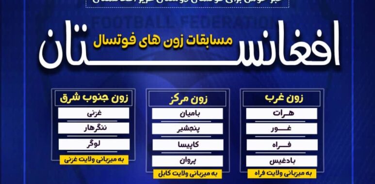 فدراسیون فوتبال افغانستان اعلان کرده است که برای تشکیل لیگ برتر فوتسال، مسابقات مقدماتی در سه زون کشور برگزار می گردد. مسابقات مقدماتی از روز پنجشنبه، ۱۷ حوت آغاز می شوند. گفته می شود سه زون باقی مانده مسابقات شان را بعدا برگزار می نمایند.