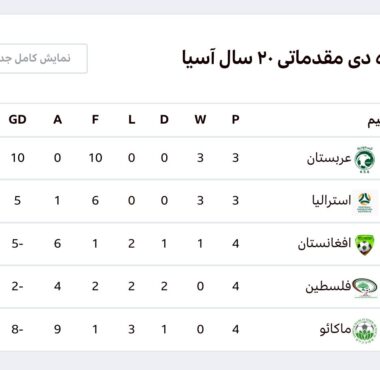 رده سنیفدراسیوننما افغانستان به جام ۱۷ سال آسیا صعود کرد 10/27/2024 بعد از درج چهارمین پیروزی در مسابقات مقدماتی ۱۷ سال آسیا، افغانستان به جام ۱۷ سال آسیا صعود کرد. این سومین حضور افغانستان در...