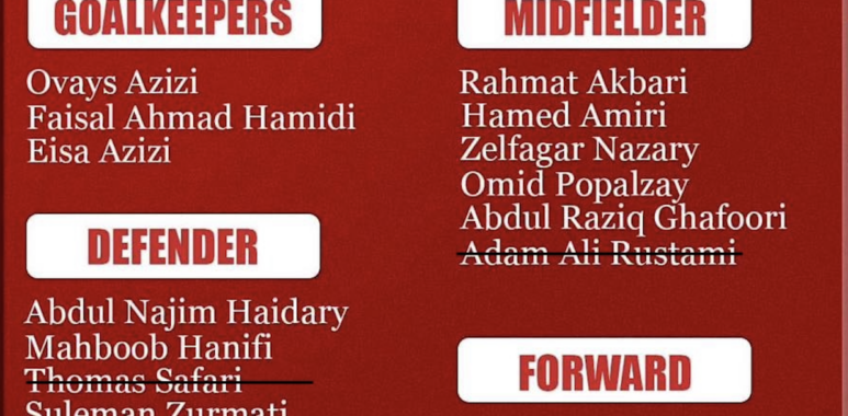 به جز فیصل حمیدی و عیسی عزیزی که دروازه بان هستند، تنها چهار بازیکن، فرهاد علی زاده، امان الله سرداری، رازق غفوری و حامد امیری منحیث بازیکن تعویضی استفاده شده می توانند.